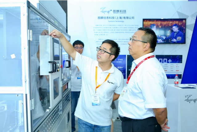 (上海张江科学城建设管理办公室处长陶贤俊参观麟图展位)